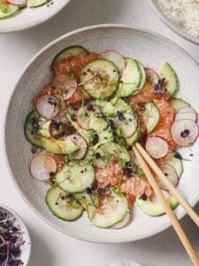 It’s a refreshing change from a standard salad and takes zero actual cooking—perfect for a quick dinner or a simple, impressive appetizer to share. If you're a crudo fan have you tried my Homemade Hamachi Crudo?